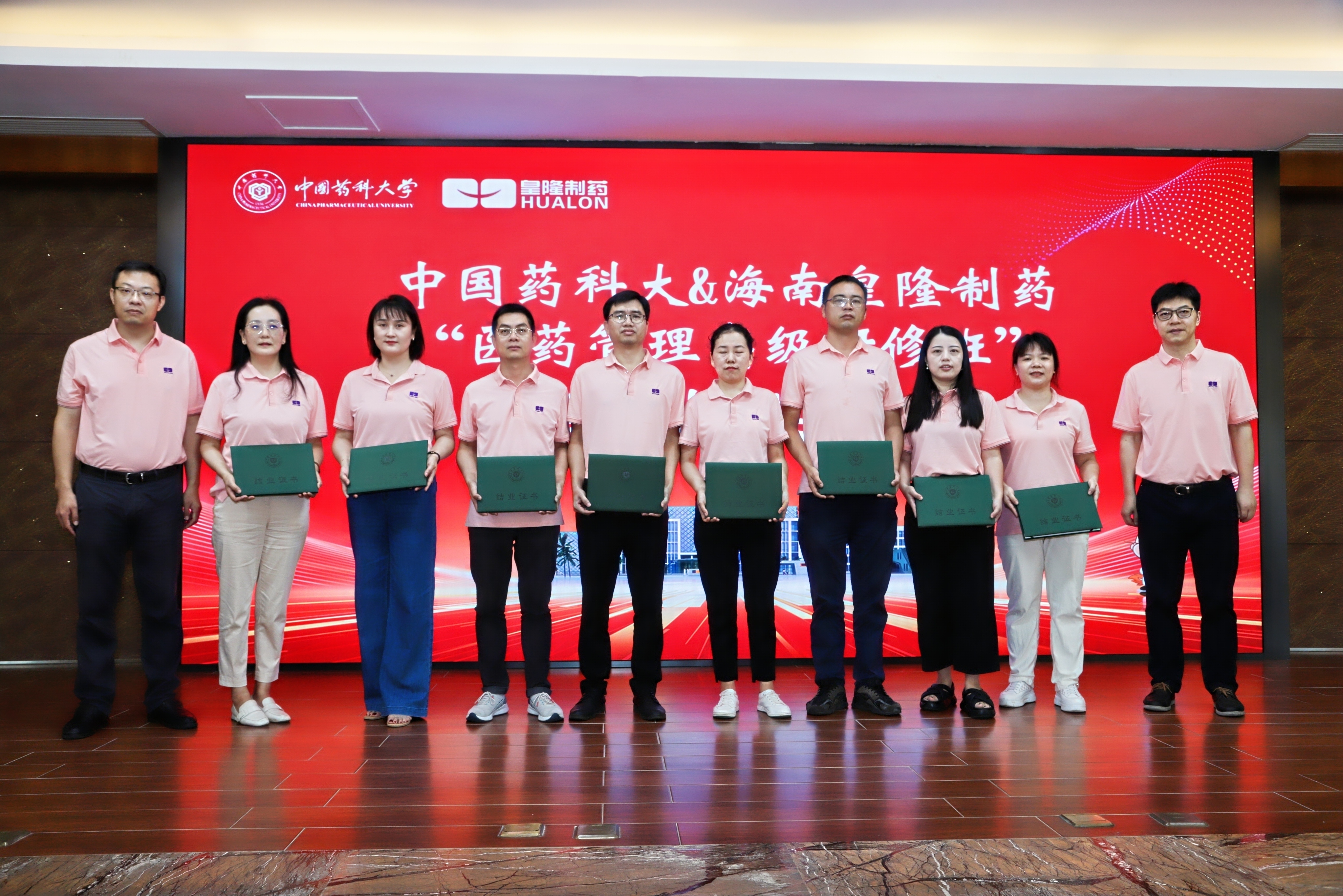 7月23日上午,中國(guó)藥科大學(xué)“專業(yè)學(xué)位研究生院級(jí)實(shí)踐基地”揭牌儀式暨中國(guó)藥科大學(xué)&海南皇隆制藥“醫(yī)藥管理高級(jí)研修班”結(jié)業(yè)典禮在海南皇隆制藥股份有限公司成功舉行。??趪?guó)家高新技術(shù)產(chǎn)業(yè)開(kāi)發(fā)區(qū)工委副書(shū)記、管委會(huì)主任李杉、中國(guó)藥科大學(xué)研究生院副院長(zhǎng)李飛、中國(guó)藥科大學(xué)國(guó)際醫(yī)藥商學(xué)會(huì)副院長(zhǎng)徐偉、海南皇隆制藥股份有限公司董事長(zhǎng)陳益智、公司管理層以及54名學(xué)員共同參加了本次儀式。