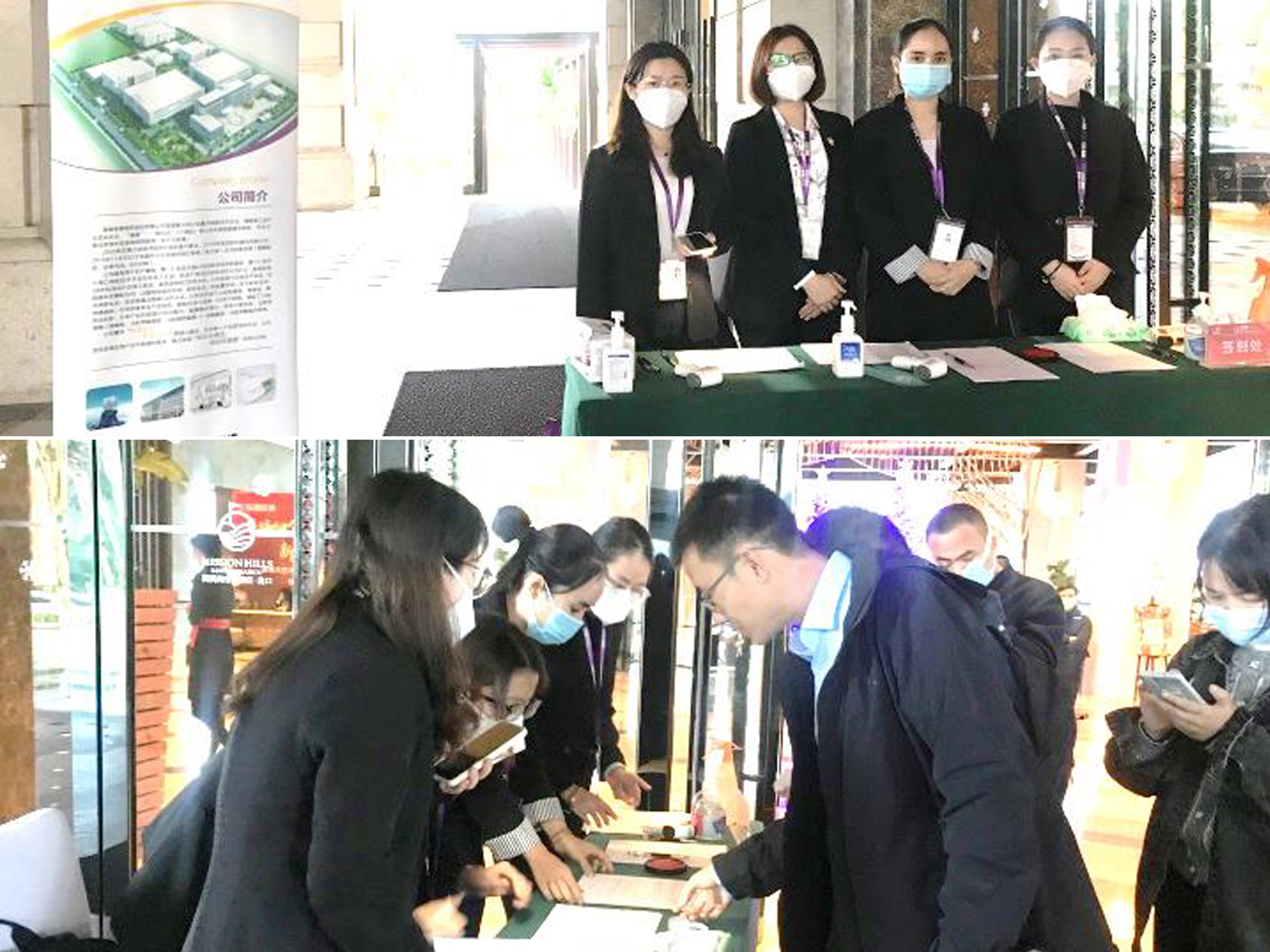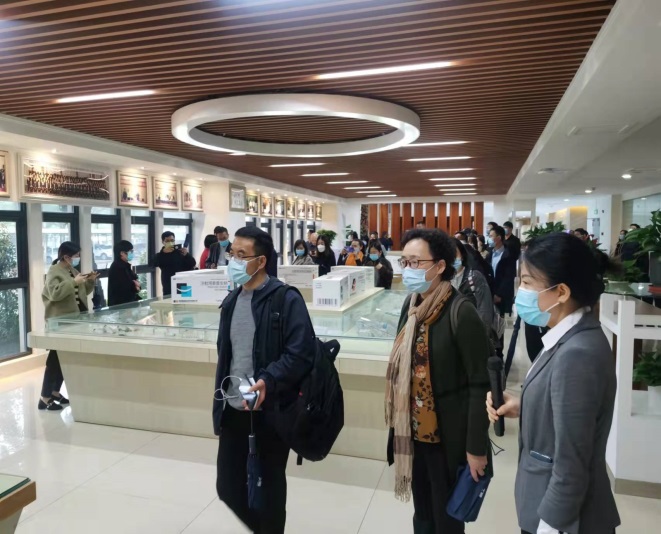乘坐公司大巴車及自駕前往的企業(yè)高管們經(jīng)過嚴格的防疫審查和登記,簽到后乘坐大巴車前往皇隆制藥。