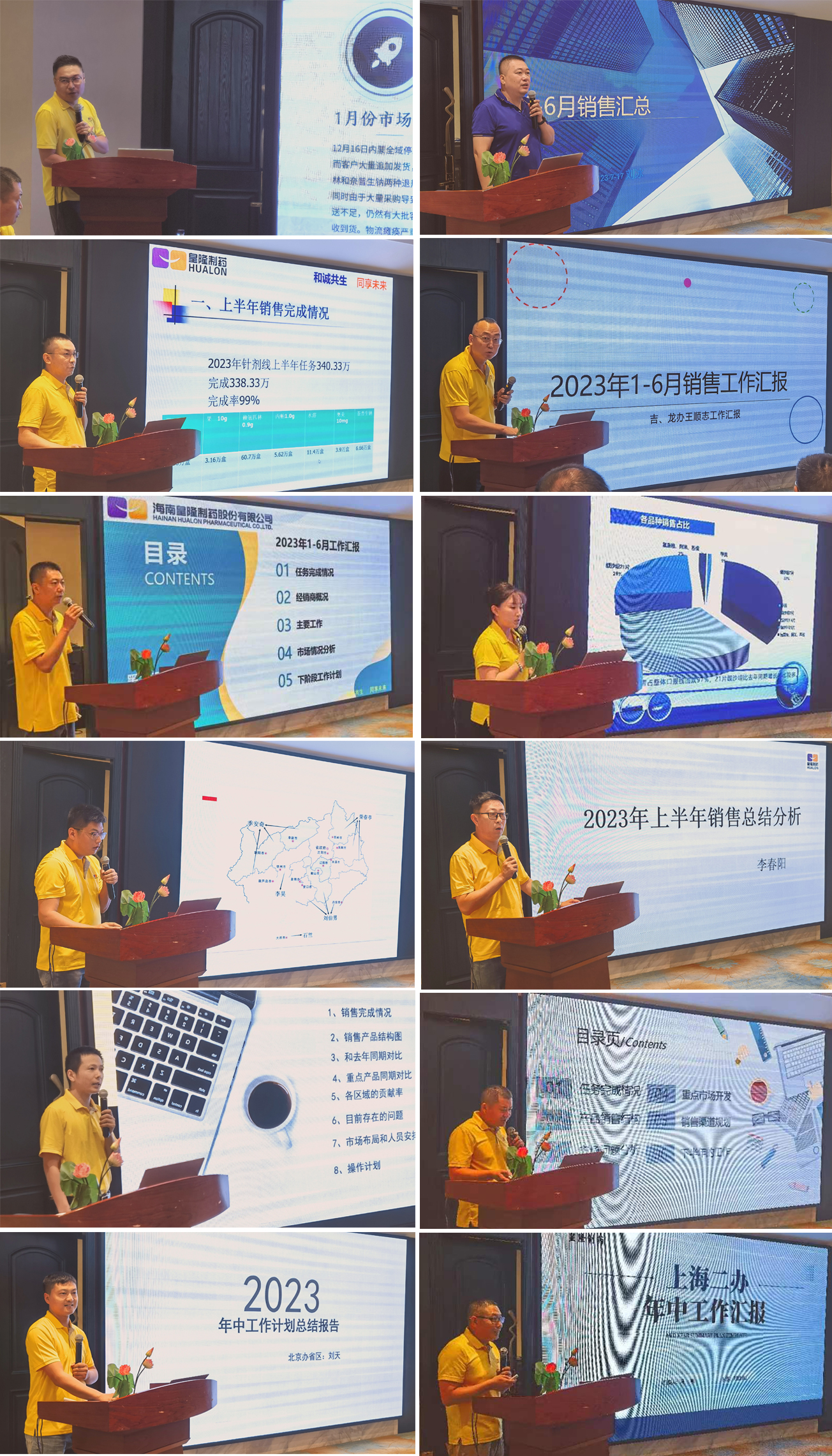 內(nèi)蒙、陜西、吉林、黑龍江、遼寧、山東、上海、安徽、江蘇、河南、河北、浙江、北京、山西等辦事處,24位省區(qū)或線經(jīng)理,分享了上半年工作體會和一些具體做法。從集采與非集采品種臨床運(yùn)作,到零售和第三終端的客戶激勵,大家暢所欲言,提出了諸多建議。大家一致認(rèn)為,沉下身、走下去,跟活動、促銷售,詳解主要模式,拿出應(yīng)對辦法。自我反思,積極改變。