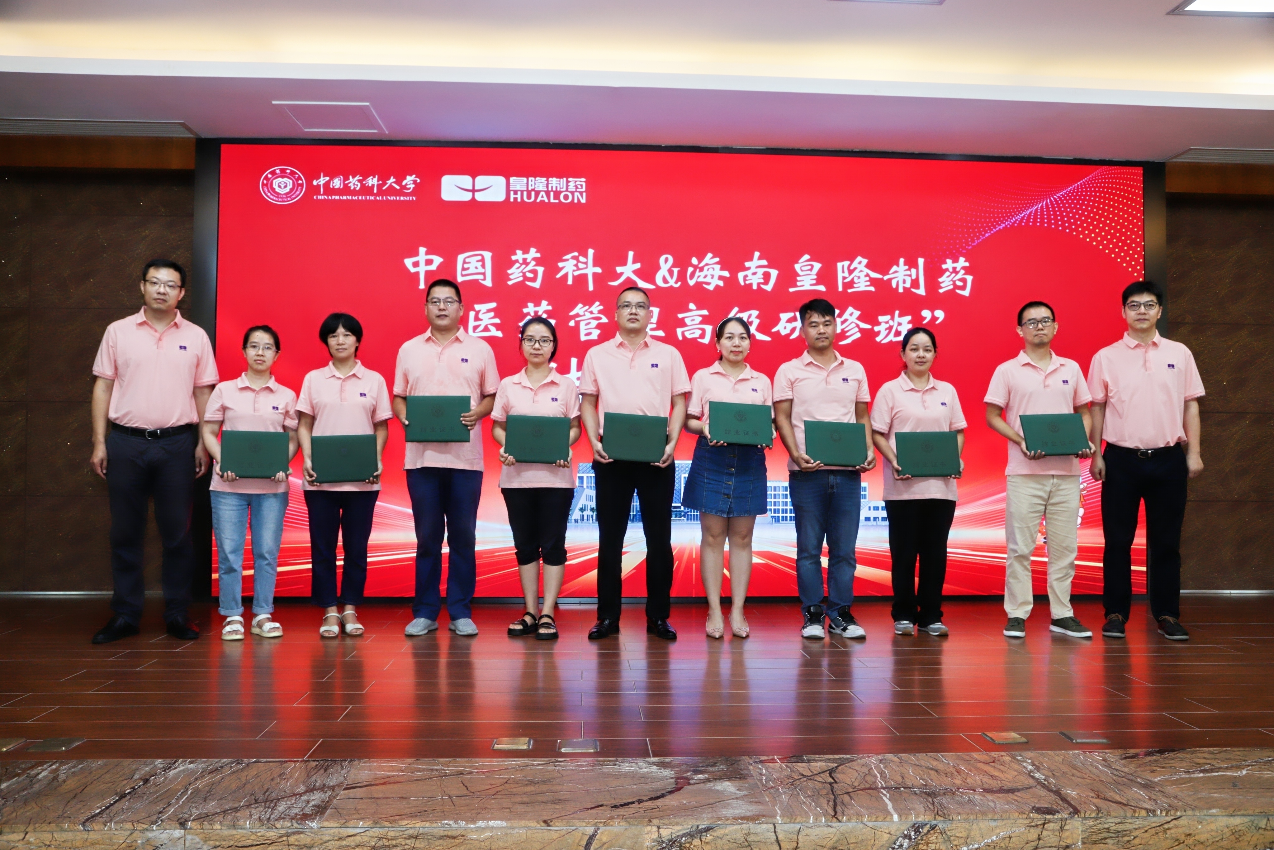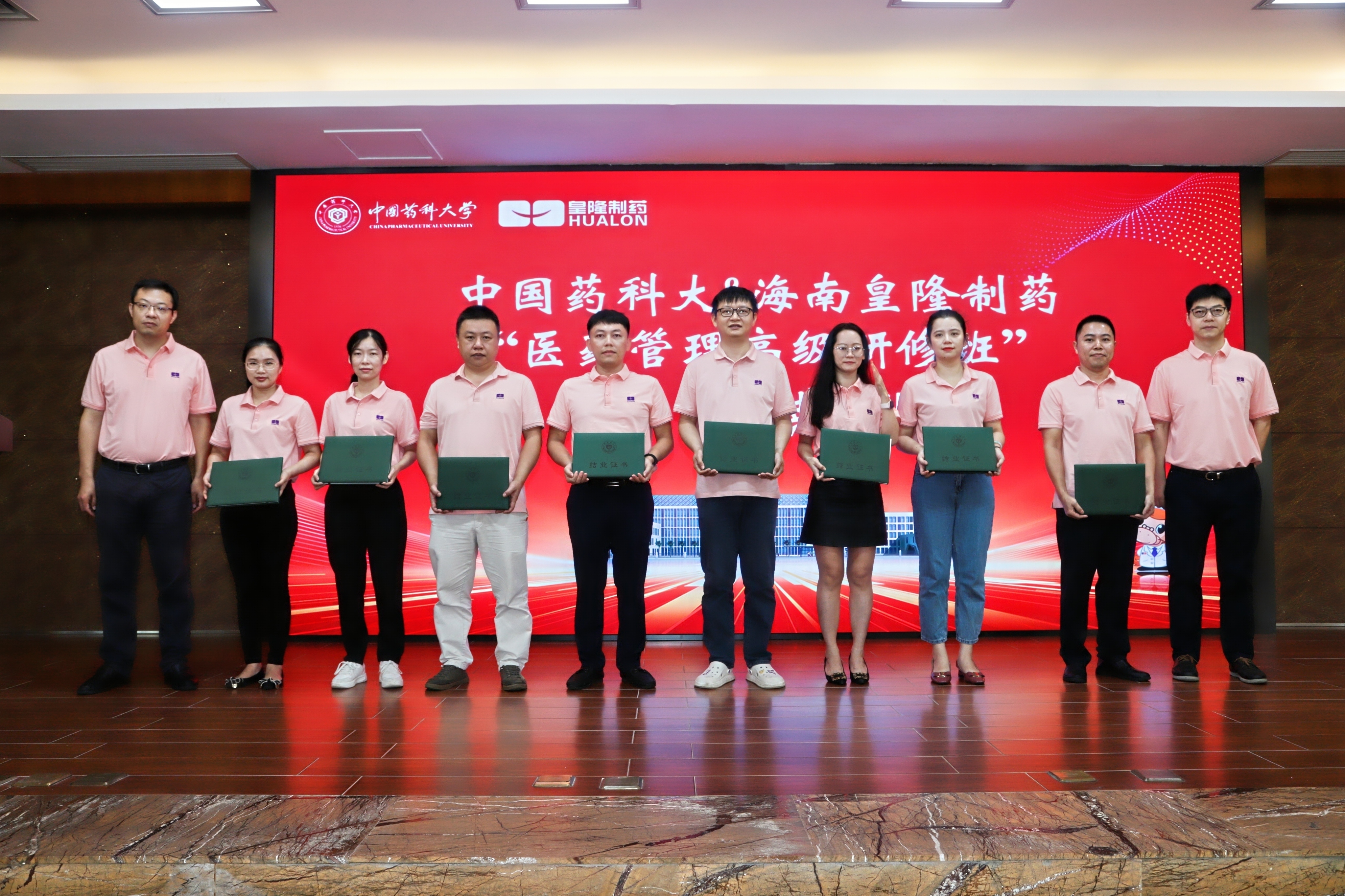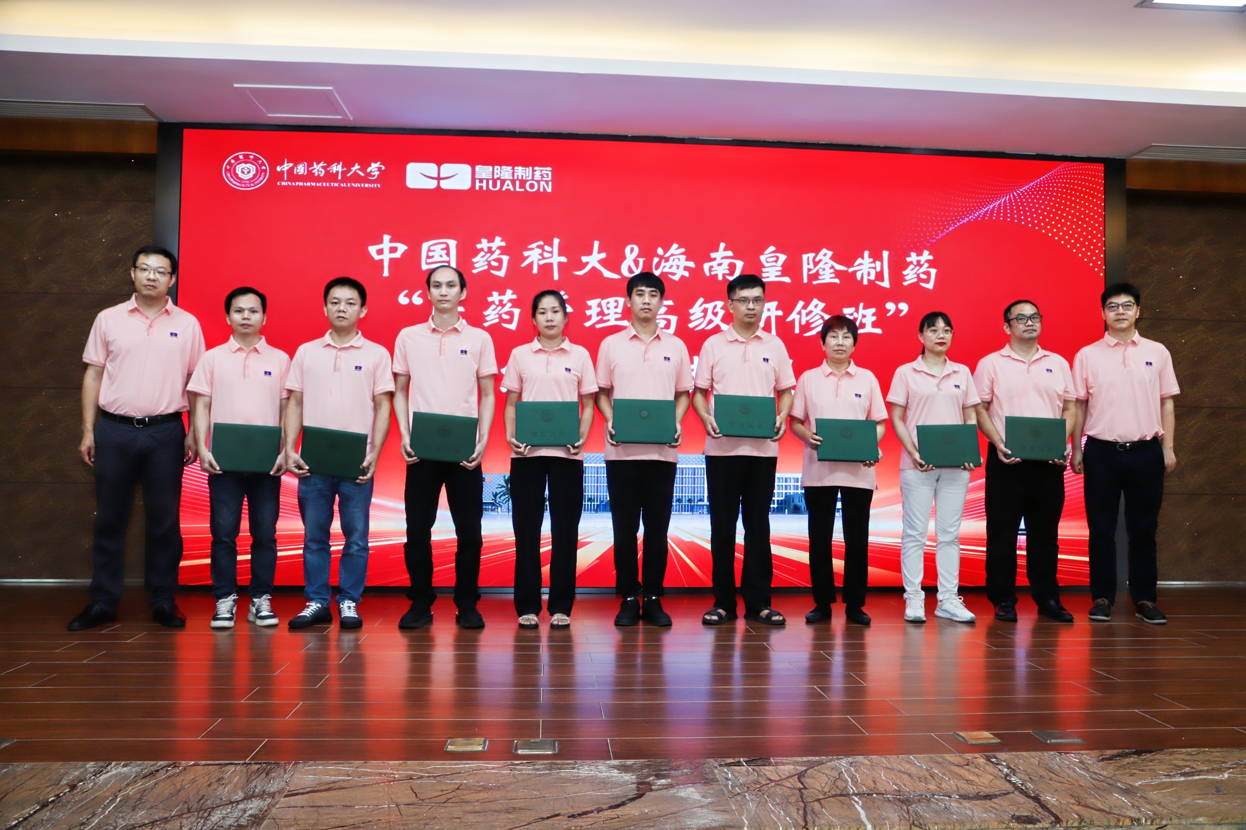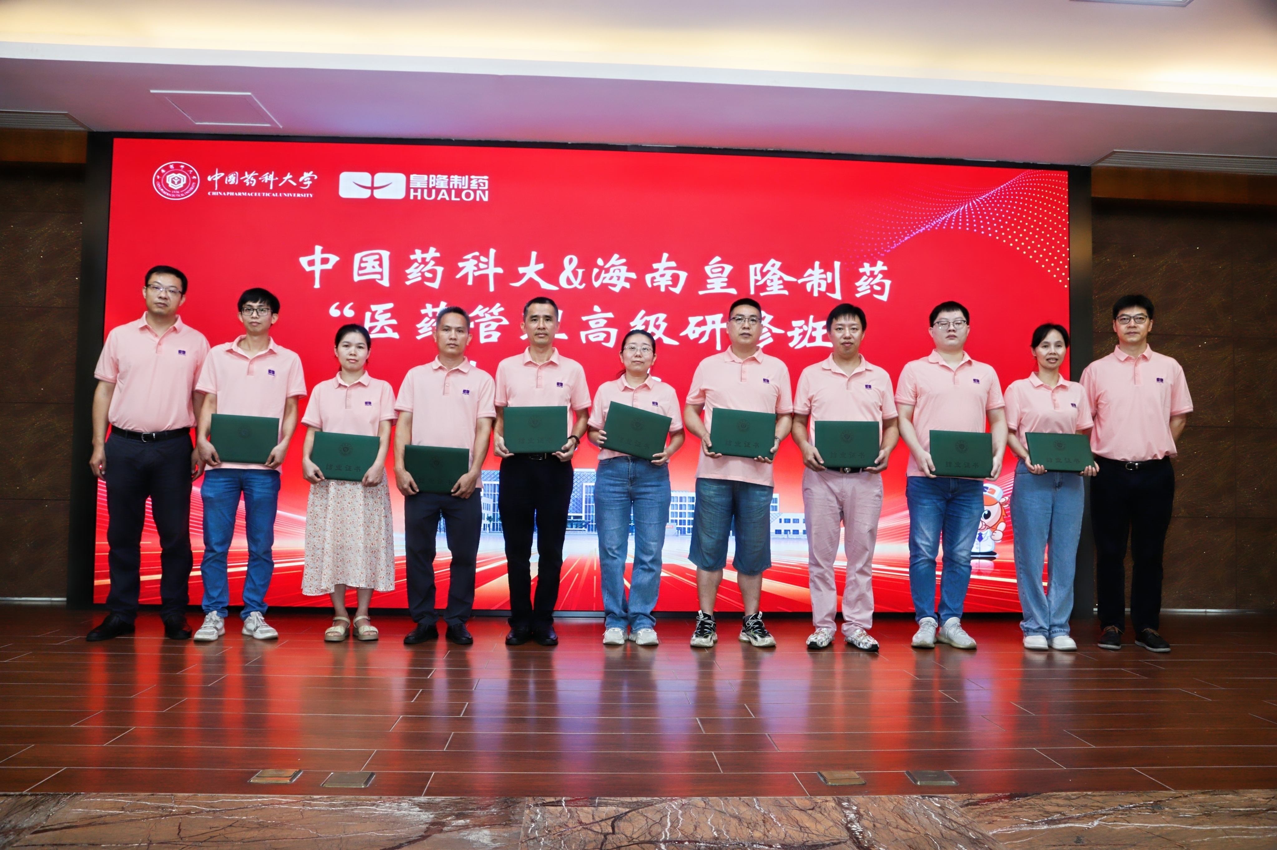 7月23日上午,中國(guó)藥科大學(xué)“專業(yè)學(xué)位研究生院級(jí)實(shí)踐基地”揭牌儀式暨中國(guó)藥科大學(xué)&海南皇隆制藥“醫(yī)藥管理高級(jí)研修班”結(jié)業(yè)典禮在海南皇隆制藥股份有限公司成功舉行。??趪?guó)家高新技術(shù)產(chǎn)業(yè)開(kāi)發(fā)區(qū)工委副書(shū)記、管委會(huì)主任李杉、中國(guó)藥科大學(xué)研究生院副院長(zhǎng)李飛、中國(guó)藥科大學(xué)國(guó)際醫(yī)藥商學(xué)會(huì)副院長(zhǎng)徐偉、海南皇隆制藥股份有限公司董事長(zhǎng)陳益智、公司管理層以及54名學(xué)員共同參加了本次儀式。